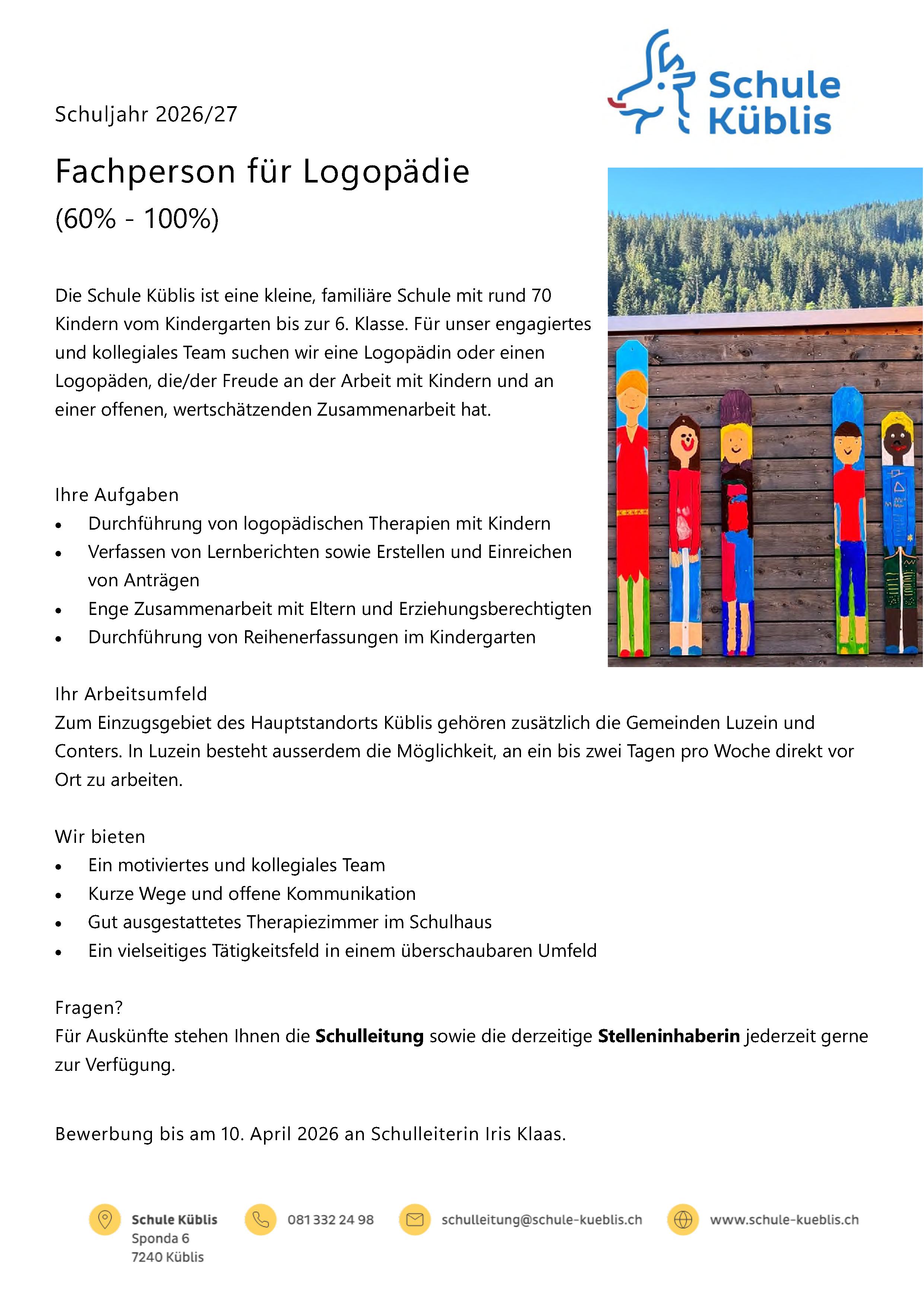 Der Schulstandort Küblis zeichnet sich dadurch aus, dass vom Kindergarten bis in die Oberstufe alle Schulstufen angeboten werden.